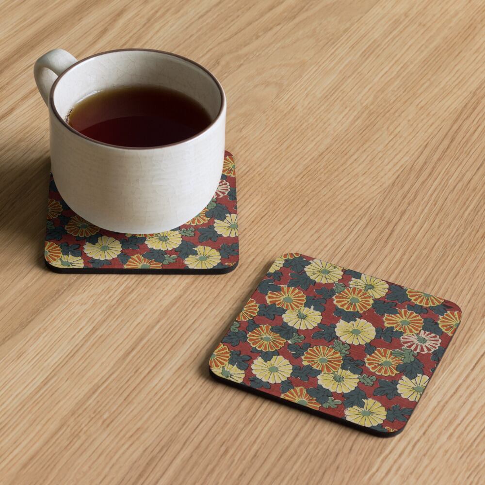 Cork-back coaster with chiyogami pattern